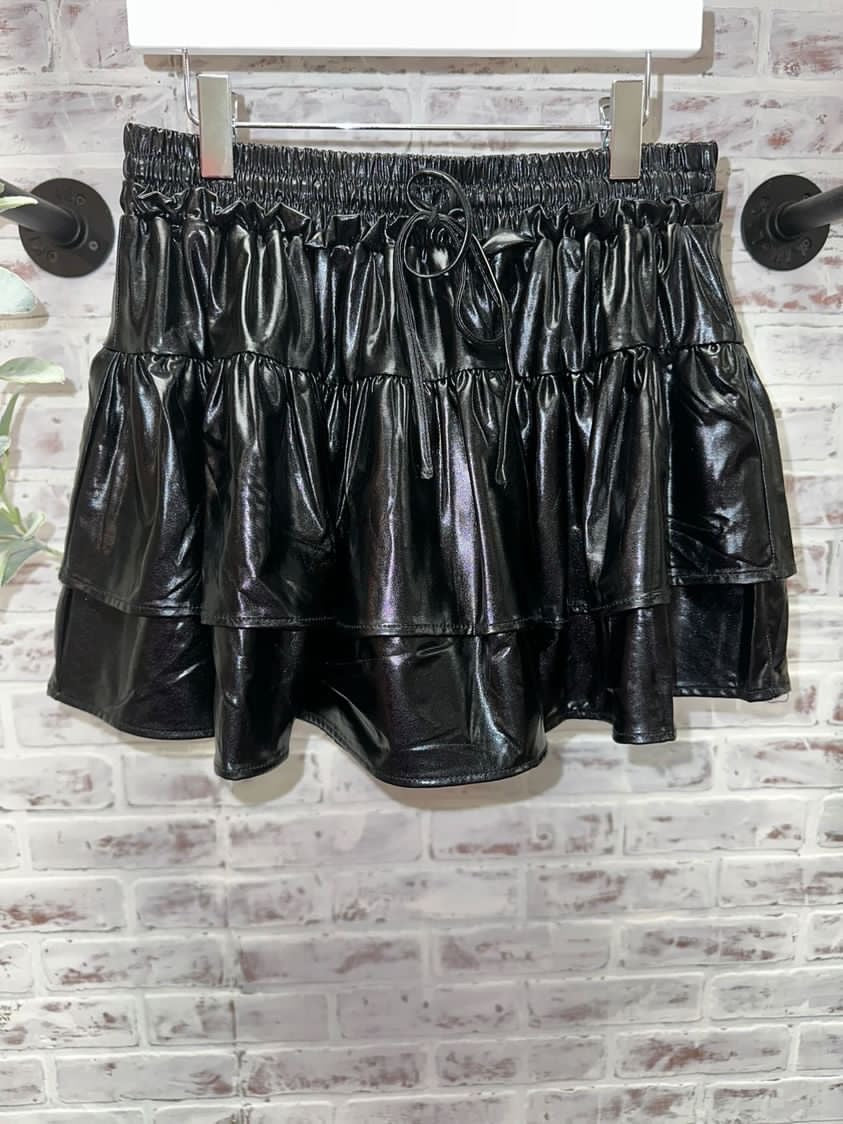 Leather Ruffles Skort (Black)